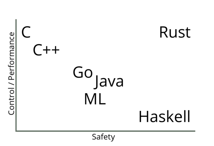 Rust는 C/C++ 같은 기존 시스템 프로그래밍 언어를 안전하게 대체할 수 있습니다. C/C++와 마찬가지로 Rust에는 거의 모든 최신 언어에서 제공하는 대규모 런타임 또는 가비지 수집기가 없지만 C/C++와 달리 Rust는 메모리 안전성을 보장하기 때문에 Rust는 C/C++에서 발생할 수 있는 잘못된 메모리 사용과 관련된 수많은 버그를 방지합니다.