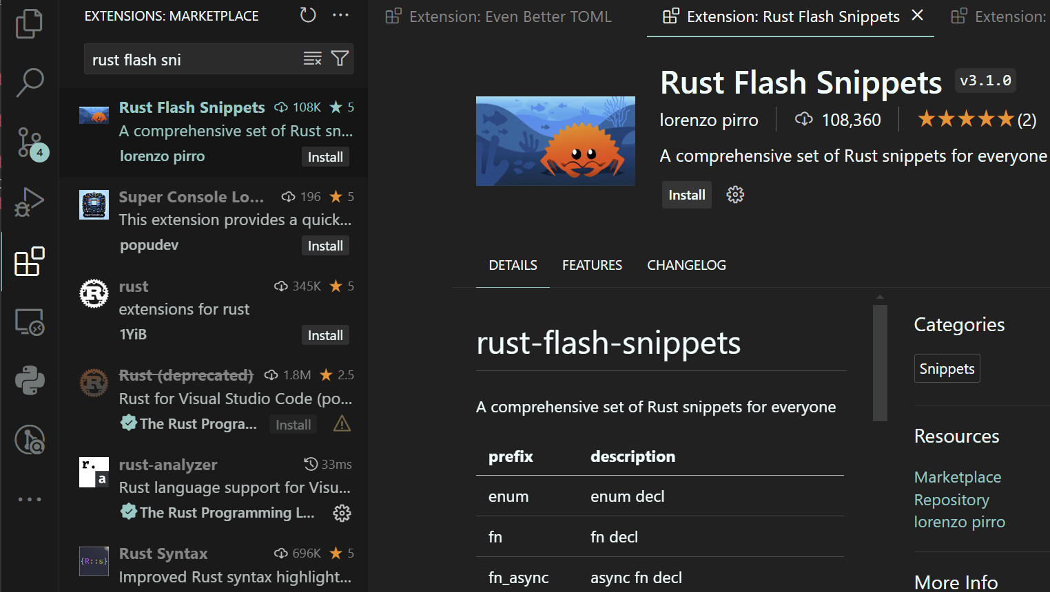 A comprehensive set of Rust snippets for everyone