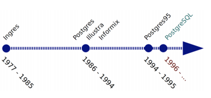 - PostgreSQL의 조상에는 여러 제품이 있는데, 그 중 Ingres(Interactive Graphics REtrieval System)는 PostgreSQL 시조