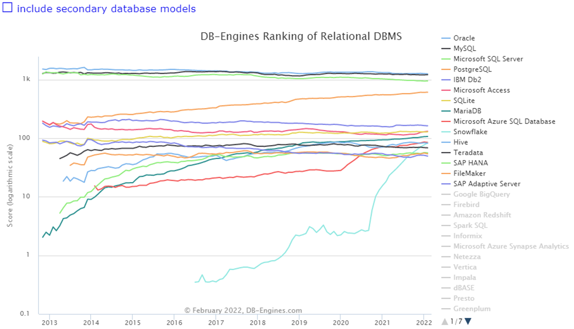 - - PostgreSQL은 북미와 일본에서 높은 인지도와 많은 인기를 얻고 있는 RDBMS